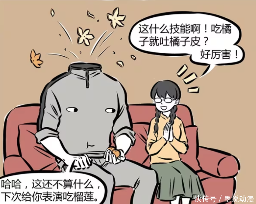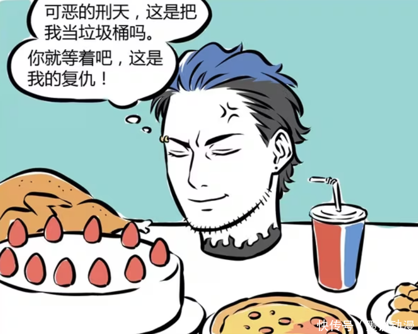 《非东说念主哉》漫画版中,刑天的体格构造不同于常东说念主,是以吃下东西,也会有跟常东说念主不同样的发达。比如吃通盘这个词橙子,会从脖子处吐出橙子皮。这个智力,一经饰演给杜惟看的。汤姆受到刑天的影响,是以暴饮暴食弱点他,后果让刑天胖了好多。