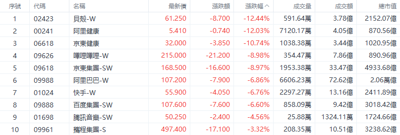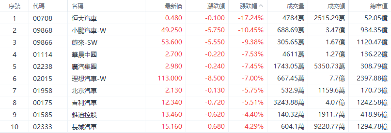 汽车股、科网股集体回调,恒大汽车跌超17%,小鹏汽车跌超10%,蔚来跌超9%;贝壳跌超12%,哔哩哔哩、京东跌近9%。