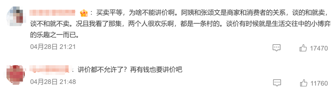 节目里,在购置新植物时,张颂文和卖花大姨磋议植物怎样栽培,随后在镜头眼前绝不遮拦地熟习砍价:“能弗成再少点,我再买多少量。”