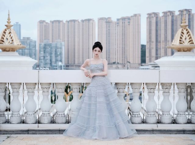 盛装出席大湾区音乐会的周洁琼,为了牵记和宣传此次行动,她在登台前挑升拍摄了一组概括的写照照。