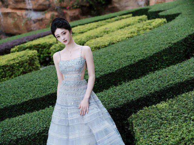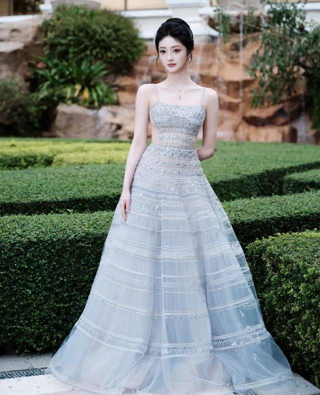 从周洁琼此次遴选的这身白色吊带裙中可以看到,这件裙子显然是一件经由尽心缠绵的高定礼裙,充满了多样小构想。