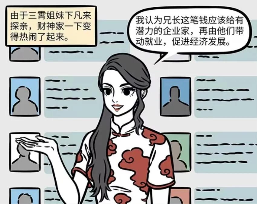 三霄娘娘沿路下凡,主要操办便是来看老大赵公明。碧霄、云端、琼霄齐在的情况下,财神家一下子变得侵犯许多。不外在这里,三霄娘娘还有一件事要责罚,也便是有一笔钱要用来投资。碧霄合计应该投资给有后劲的企业家,再由他们带动劳动,从而促进经济发展。碧霄的念念维很正确,很相宜当雷同。