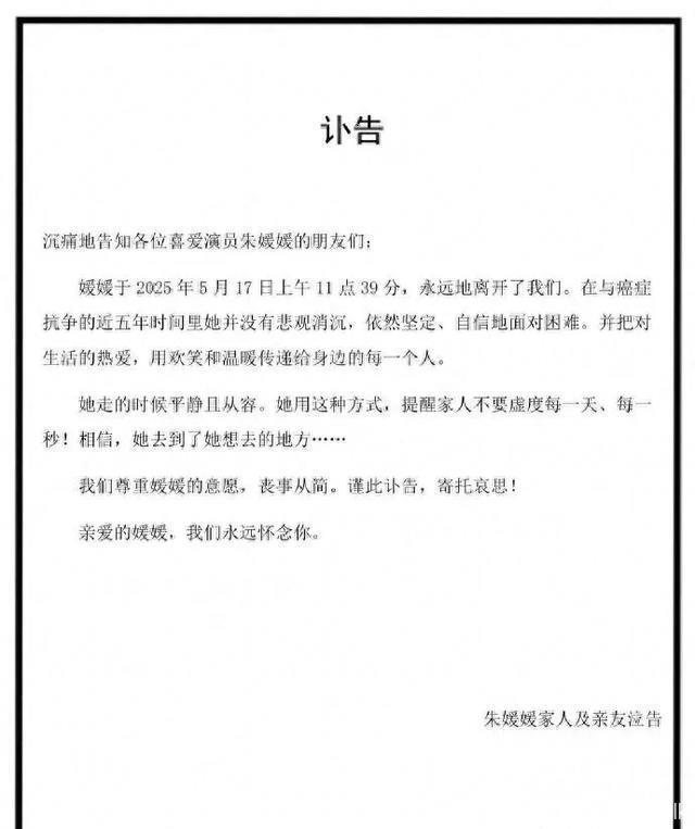 提及朱媛媛物化,那真实是太倏得了,谁也没念念到,她会这样早就离开,难忘那天,辛柏青发了一个讣告,说他的配头朱媛媛物化了,技巧是2025年5月17号,哎,阿谁技巧,民众才知谈,蓝本她也曾走了,自后,中国国度话剧院也发了讣告,说朱媛媛是他们的一级演员,享年51岁,讣告上还说,凶事节约办理,尊重家属的意愿,哎,这事儿啊,念念念念就让东谈主酸心,那么好的一个演员,就这样走了。