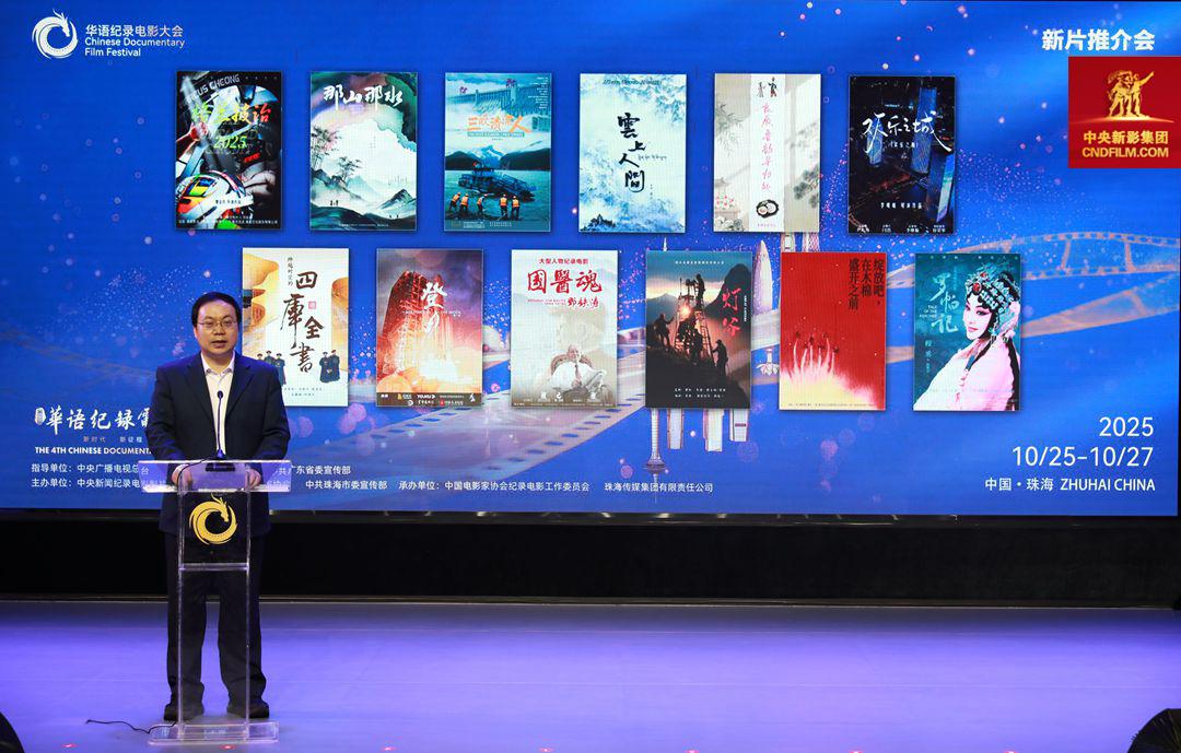 10月27日上昼,第四届华语记载电影大会新片推介会在广东珠海举办。中国文联电影艺术中心主任宋智勤,中央播送电视总台影视翻译制作中心主任王璐,中央新闻记载电影制片厂(集团)党委副文告、总司理仇东方,中央新闻记载电影制片厂(集团)党委委员、副总司理池建新,珠海市委宣传部副部长沈岩,珠海传媒集团副总剪辑张大勇等出席推介会。