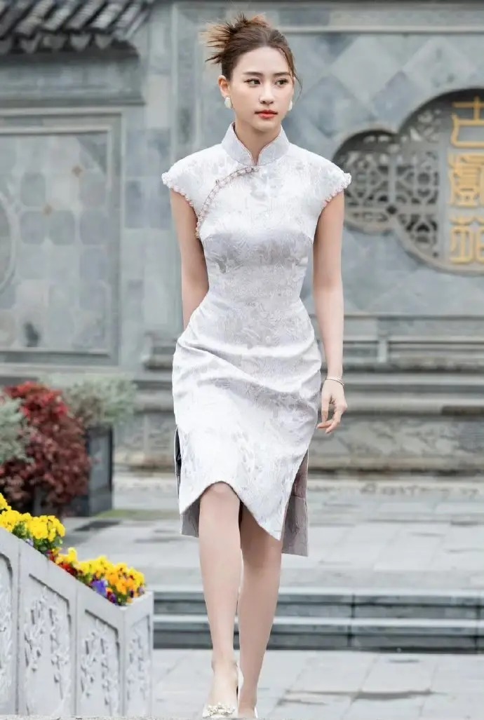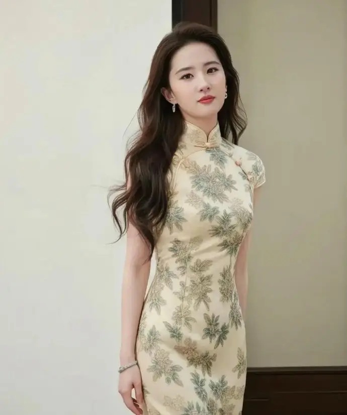 在编著上,相对修身的编著,既完好地勾画出她的形体弧线,展示了女性特有的柔好意思和优雅。材质采选上,旗袍收受了质感高等的丝绸布料,丝绸的光芒感增多了举座的立志感与丽都度。在野心上,将传统元素与当代野心的完好结合。立领野心不仅保留了传统旗袍的经典元素,还凸显了她颈部的修长优好意思。袖口和侧边开叉野心则增多了一点灵动感和当代感,使旗袍不仅保留了传统韵味,也愈加相宜当代审好意思。