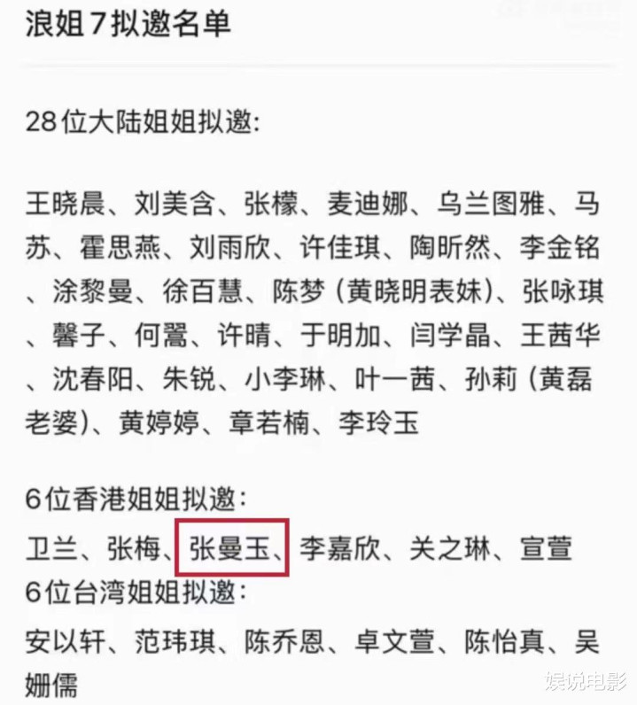 浪姐其实如故到了无足挂齿的过程,因为王人是邀请一些如故没着名气的姐姐回锅包装再度启航,稍稍有点热度,但热度确实不是很大,是以这个节目到了需要有东谈主挽回的时分,而这个东谈主可能是影后张曼玉,然则张曼玉出席的可能性不是很高,只可说有50%,因为她很爱唱歌,但她的烟嗓听起来很头大。