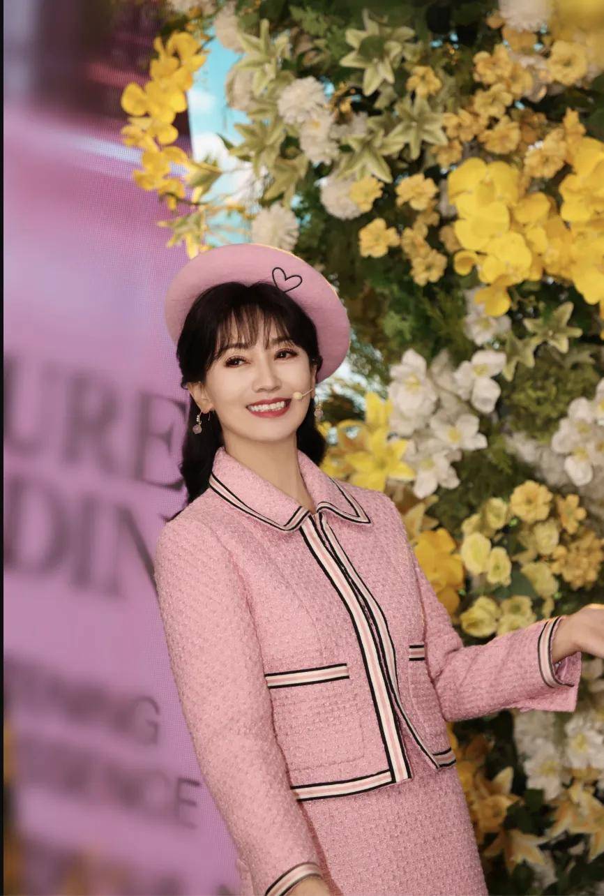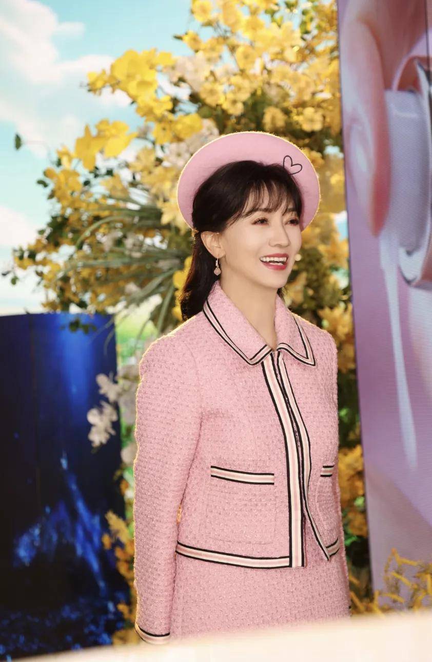 她身着一套嫩粉色小香风套装,上身小香风贪图细腻娴雅,下身搭配从简一步裙,再戴上同色系帽子,一忽儿让春天的气味扑面而来。这嫩粉色极为荒谬,不同于常见的暗粉,稍不防御就会显得俗气,正如那句“粉色娇嫩,你几岁了”。