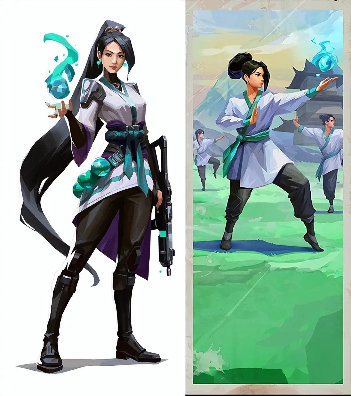 在配景设定中,贤者曾在谈不雅静修多年,其衣饰当然从谈家练功服中收受灵感。但传统练功服下摆过长,不利于实战活泼,于是设想师将其翻新为短裙式样,既保留了东方气韵,又贴合政策需求。