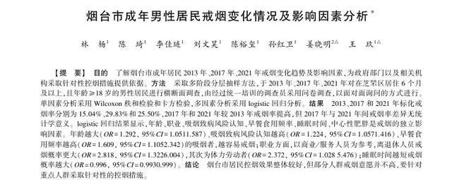 [1]林杨,陈琦,李佳琏,等.烟台市成年男性住户戒烟变化情况及影响身分分析[J].中国卫生统计,2025